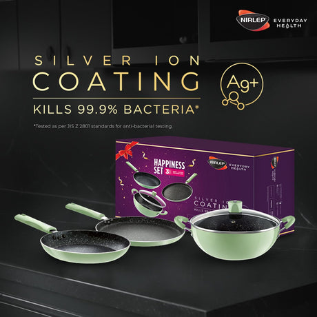 A premium non-stick cookware set designed for durability, even heating, and healthy cooking with less oil.