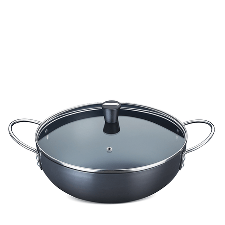 Ebony Hard Anodised Deep Kadhai with Glass Lid