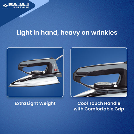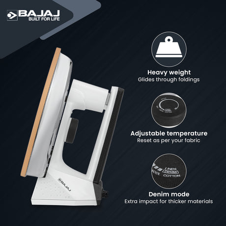 Bajajโs irons use premium materials, addressing functionality queries. High-grade non-stick soleplates ensure durability in these best irons. Heat-resistant plastic housing enhances longevity for these irons for clothes. Reliable heating elements improve performance for these top irons. Customers value the sturdy build of these irons price models online. Easy maintenance keeps these best irons for clothes in top condition. The irons price reflects high-quality materials. Available online, theyโre built to last. Bajajโs irons online ensure reliable performance. Choose these best irons for lasting efficiency.