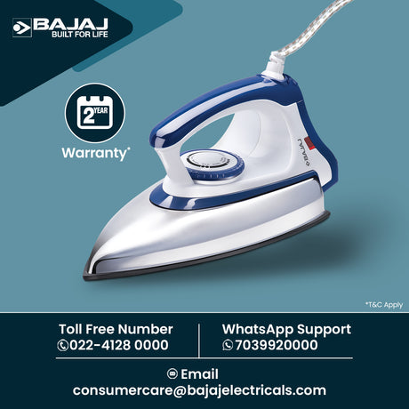 Bajaj Electricals excels in delivering reliable, efficient irons. With decades of trust, these best irons ensure quality. Models meet diverse ironing needs for these irons for clothes. High-grade materials guarantee durability for these top irons. The irons price offers excellent value for daily use. Bajajโs after-sales service supports these best irons for clothes with ease. Safety features ensure worry-free use of these irons online. EMI options via Bajaj Finserv make these top irons accessible. Choose Bajaj for reliable best irons. Achieve crisp results with these irons for clothes online.