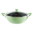 - ["Number of Commodity: 1U", "Commodity: Deep Kadhai", "Material: Aluminium", "Diameter: 22 cm", "Lid: Glass Lid", "Base Type: Induction Compatible", "Body Color: Pastel Green"]
